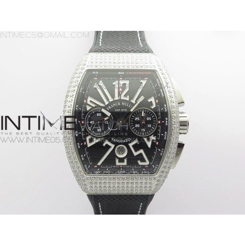 AB공장 뱅가드 블랙다이얼 거미스트랩 Vanguard V45 Chrono Brushed SS Pave Crystals ABF Best Edition Black Dial on Black Gummy Strap A7750 > 프랭크뮬러