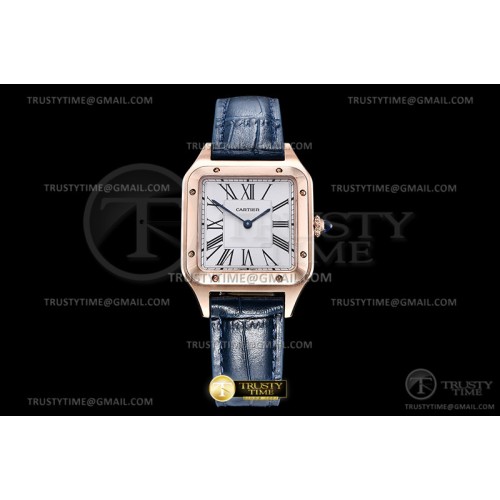 OK공장 까르띠에 산토스 뒤몽 35 로즈골드금통 화이트다이얼 블루가죽스트랩 Santos De Cartier 35mm Mens Blu RG/LE Wht OKF Sw Qtz