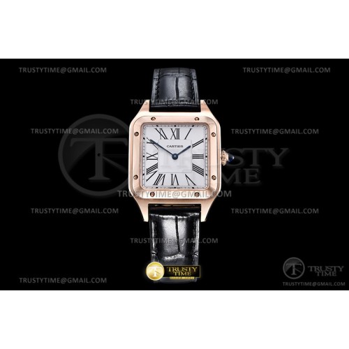 OK공장 까르띠에 산토스 뒤몽 35 로즈골드금통 화이트다이얼 블랙가죽스트랩 Santos De Cartier 35mm Mens Blk RG/LE Wht OKF Sw Qtz