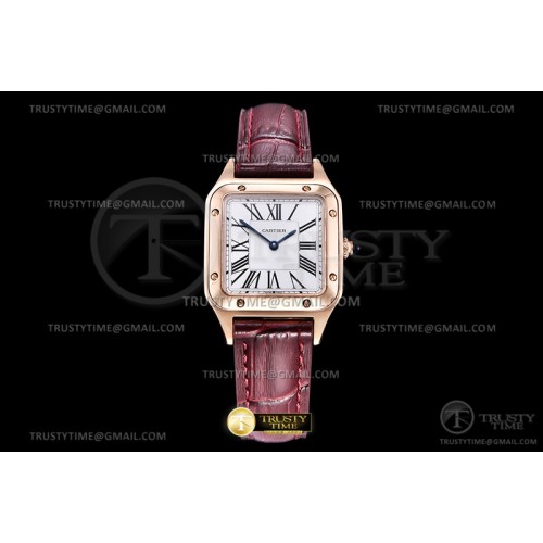 OK공장 까르띠에 산토스 뒤몽 33 로즈골드금통 화이트다이얼 레드가죽스트랩 Santos De Cartier 2018 Ladies Brn RG/LE Wht OKF Sw Qtz