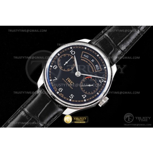AZ공장 IWC 포르투기저 애뉴얼캘린더 스틸 블랙다이얼 빈티지인덱스 가죽스트랩 Portugieser Annual Cal IW503502 SS/LE Blk AZF A52850