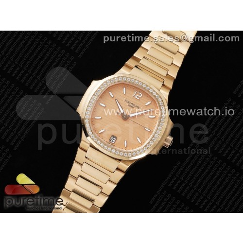 3K공장 파텍필립 노틸러스 레이디 7118 로즈골드금통 다이아몬드베젤 골드다이얼 브레이슬릿 Nautilus 7118 Ladies RG 3KF 1:1 Best Edition RG Dial Diamonds Bezel on RG Bracelet A324 Super Clone