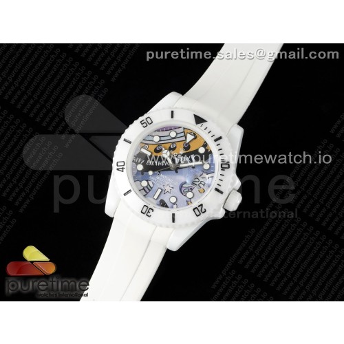 • 5G공장 롤렉스 커스텀 서브마리너 40 풀세라믹 페인팅다이얼 러버스트랩 Submariner 40mm White Ceramic 5GF Best Edition Painting Dial on White Rubber Strap SA3135