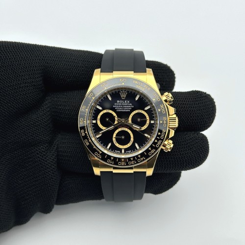 CLEAN공장 롤렉스 세라믹 데이토나 옐로우골드금통 블랙다이얼 러버스트랩 클린공장 Daytona 116518 Clean 1:1 Best Edition Black Dial on Oysterflex Rubber Strap SA4130 V2 > 데이토나