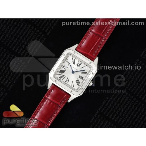 F1공장 까르띠에 산토스 뒤몽 27.5 스틸 실버다이얼 레드가죽스트랩 Santos Dumont 27.5mm IWSF Best Edition Silver Dial on Red Leather Strap Quartz