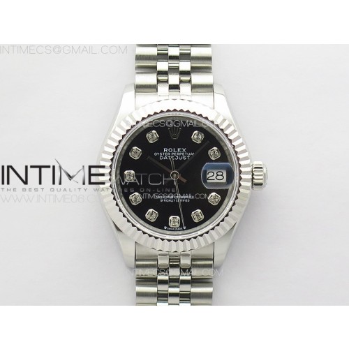 APS공장 롤렉스 레이디 데이저스트 28 스틸 블랙다이아몬드다이얼 플루티드베젤 쥬빌레브레이슬릿 Datejust 28mm 279179 SS APSF Best Edition Black Dial Crystals Markers on SS Jubilee Bracelet NH05