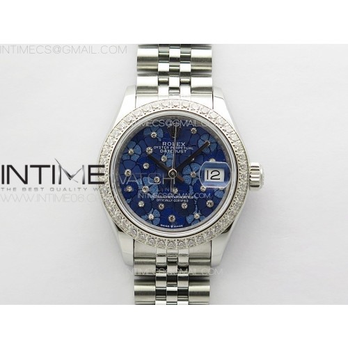 • APS공장 롤렉스 레이디 데이저스트 28 스틸 다이아몬드베젤 블루플로럴다이아몬드다이얼 플루티드베젤 쥬빌레브레이슬릿 Datejust 28mm 279179 SS/Crystals APSF Best Edition Blue Flowers Dial on SS Jubilee Bracelet NH05
