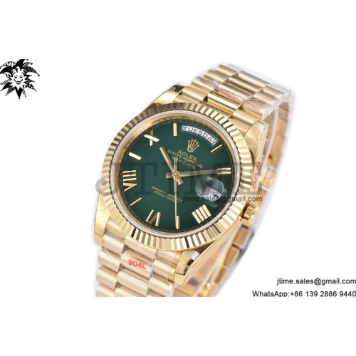 GM공장 롤렉스 데이데이트 40 옐로우골드금통 그린다이얼 로만인덱스 프레지던트브레이슬릿 텅스텐 2836 DDay Date 40 YG 904L Steel GMF 1:1 Best Edition Green Dial on YG Bracelet A2836(Tungsten Heavy Version)