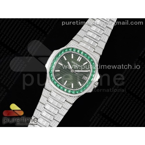 TW공장 파텍필립 노틸러스 점보 5711 다이아몬드베젤 그린다이얼 다이아몬드브레이슬릿 Nautilus 5711 SS TWF Full Diamonds Diamonds Bezel Green Dial on Diamonds Bracelet A324