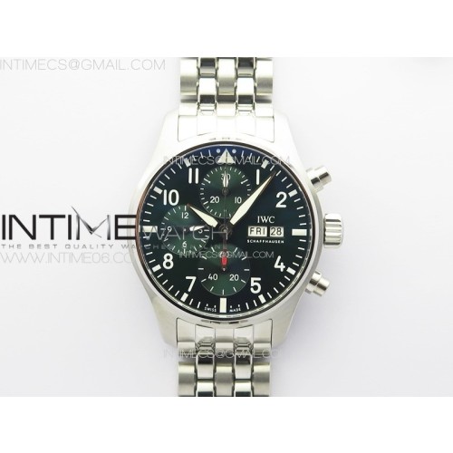 KK공장 IWC 파일럿 크로노그래프 IW388104 브레이슬릿 Pilot Chrono IW388104 KKF Best Edition Green Dial on SS Bracelet A7750 to 69385