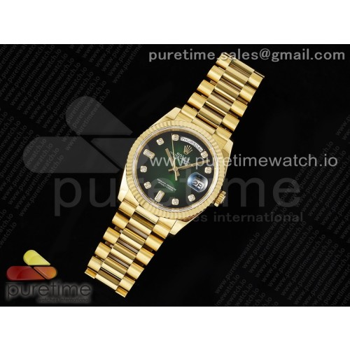 RA공장 롤렉스 데이데이트 36 옐로우골드금통 그린옴브르다이얼 다이아몬드인덱스 프레지던트브레이슬릿 Day Date 36 YG RAF Best Edition Green/Black Diamonds Dial on YG Bracelet A2836