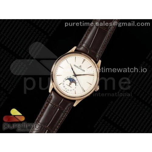APS공장 예거르쿨트르 마스터 울트라씬 문페이즈 로즈골드금통 화이트다이얼 브라운가죽스트랩 Master Ultra Thin Moon RG APSF 1:1 Best Edition White Dial on Brown Leather Strap SA925 Super Clone > 예거르쿨트르