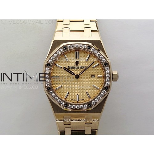 ZF공장 오데마피게 레이디 로얄오크 로즈골드금통 골드다이얼 다이아몬드베젤 브레이슬릿 Lady Royal Oak 33mm 67651 Diamonds Bezel RG ZF 1:1 Best Edition RG Textured Dial on RG Bracelet RONDA Quartz