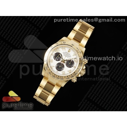 OM공장 롤렉스 스틸 데이토나 옐로우골드 금통 화이트레이싱다이얼 브레이슬릿 Daytona 116508 YG OMF Best Edition White/Black Dial on YG Bracelet A7750 (Slim Movement)
