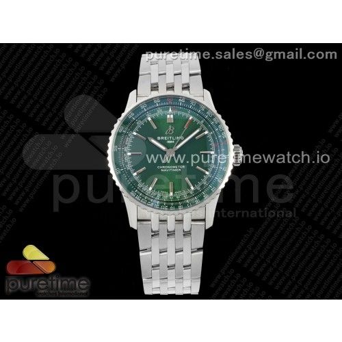 TF공장 브라이틀링 내비타이머 41미리 스틸 그린다이얼 브레이슬릿 Navitimer Automatic 41mm SS TF 1:1 Best Edition Green Dial on SS Bracelet A2824 > 내비타이머