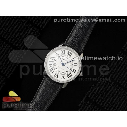 AF공장 까르띠에 롱드솔로 42mm 스틸 화이트다이얼 다이아몬드베젤 블랙가죽스트랩 Ronde Solo 42mm SS AF 1:1 Best Edition White Dial Diamonds Bezel on Black Black Strap MIYOTA 9015 > AF 까르띠에 쿼츠 시리즈 주력