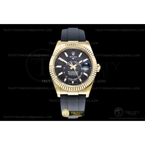 ZF공장 롤렉스 스카이드웰러 옐로우골드금통 블랙다이얼 러버스트랩 텅스텐 Skydweller 336238 YG/RU Black ZF V2 Asia 2824
