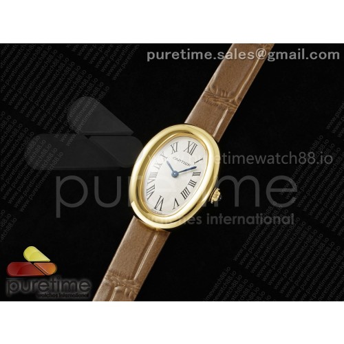 AF공장 까르띠에 베누아 옐로우골드금통 화이트다이얼 브라운스트랩 Baignoire Watch YG AF 1:1 Best Edition White Dial on Brown Croco Strap RONDA Quartz