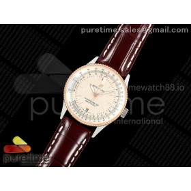 TF공장 브라이틀링 내비타이머 38 크림다이얼 브라운가죽스트랩 Navitimer 38 Date SS TF 1:1 Best Edition Cream Dial RG Bezel on Brown Leather Strap A2824