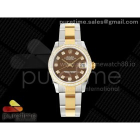 AR공장 롤렉스 레이디 데이저스트 31 옐로우골드콤비 브라운다이얼 텐포인트 다이아몬드베젤 오이스터브레이슬릿 10P DateJust 31 SS/YG ARF 1:1 Best Edition Brown MOP Diamonds Dial Diamonds Bezel on Oyster Bracelet ETA2688