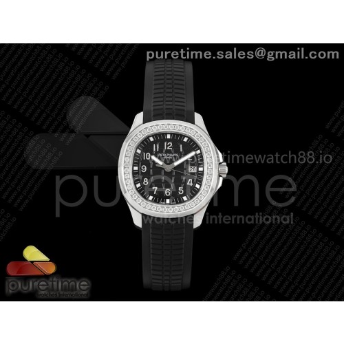 PP공장 파텍필립 아쿠아넛 5267 블랙다이얼 다이아몬드베젤 블랙러버스트랩 Aquanaut 5267 SS PPF 1:1 Best Edition Black Textured Dial on Black Rubber Strap Ronda Quartz