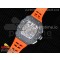 KU공장 리차드밀 RM011 카본케이스 크로노 크리스탈스켈레톤 옐로우다이얼 오렌지레이싱러버스트랩RM011 Carbon Case Chrono Crystal Skeleton Yellow Dial on Orange Racing Rubber Strap A7750 KV공장